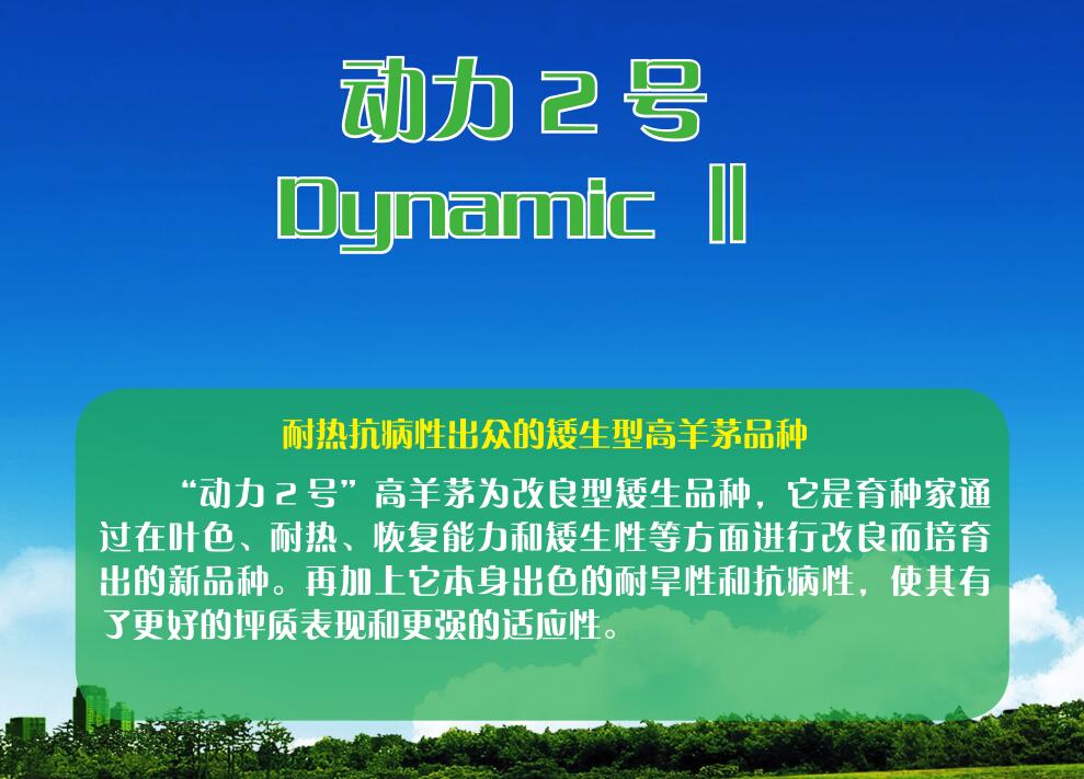 “动力2号”适应性强,不但在春秋季表现良好,而且在夏季高温多雨时节亦有极佳表现。“动力2号”可广泛应用于庭院、公园、商业地带和高尔夫球场高草区草坪的建植以及公路、堤岸边坡的绿化。