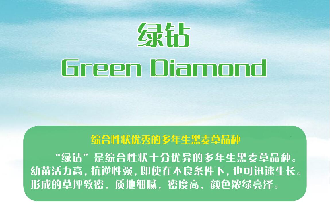 “绿钻”抗逆性强,成坪快,色泽浓绿,是南方草皮卷基地(天堂草、马尼拉、狗牙根、结缕草等)秋季补播的理想品种。通过交播“绿钻”既实现了草坪的四季常绿,还可减轻人们对休眠暖季型草坪草的践踏与伤害,从而有利于暖季型草坪第二年春季的正常返青和生长。