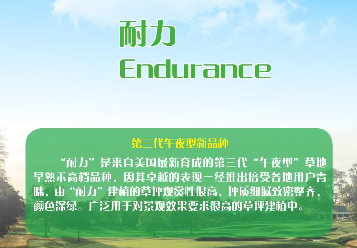 “耐力”适宜中高养护水平的管理,喜高水肥,在高档养护条件下持久性更强,坪质表现最佳。